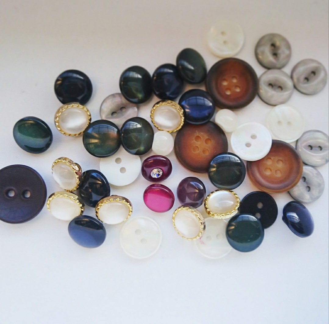 ボタン 着なくなった服を整理した。 毎度のことだけどたくさん出るな~。 買い物の仕方を間違ってるってことかね…。 服を処分する前に恒例のボタン外し。 アクセサリーに使えるかな?と思って外すけど、いつ使うのかは未定。 それにしても、光を反射してキレイだなあ。 2021年 10月 03日| 手作り|Comment(0)
